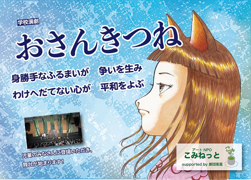 京都に伝わる民話『おさんきつね』を人間と自然の調和というテーマを絡ませて書きおこした、楽しくも哀感のある創作学校演劇です。